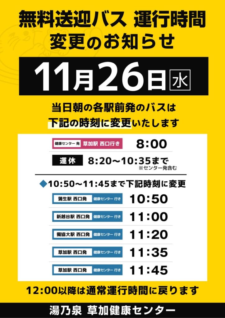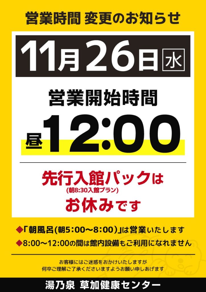 11月26日(水) 営業開始時間変更のお知らせ(更新)