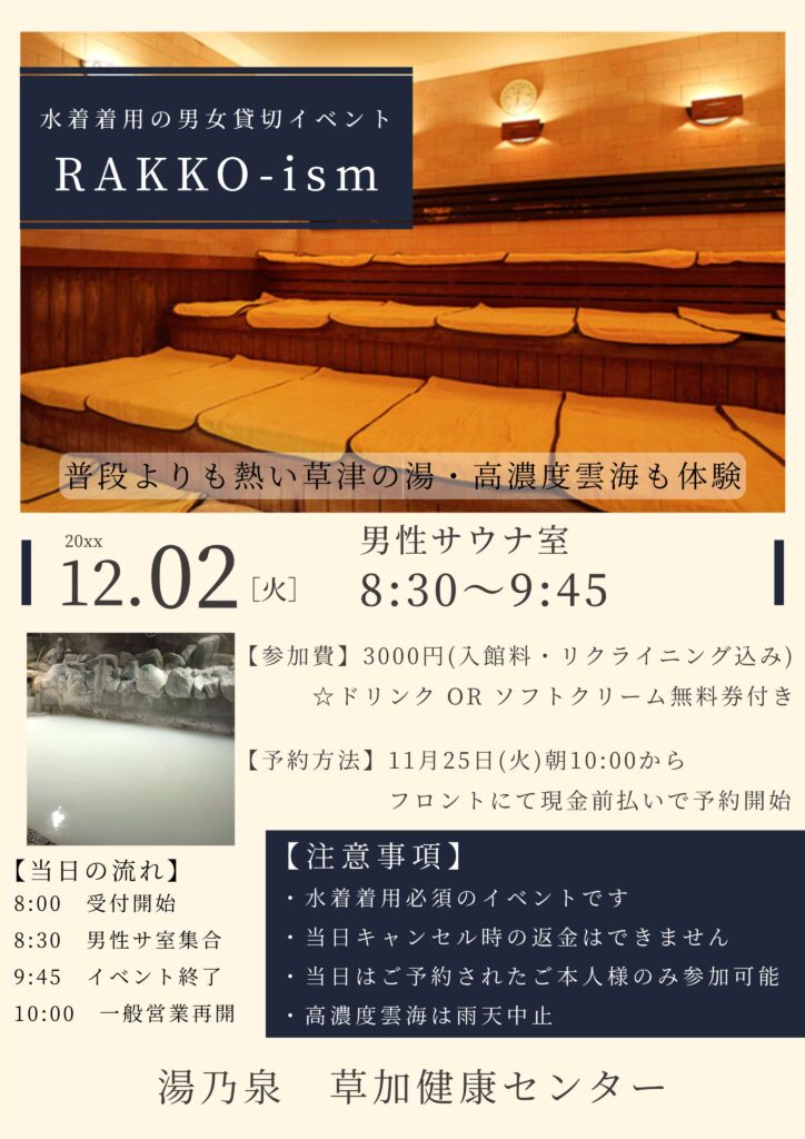 12/2(火) 男女貸切サウナイベント「Rakko-ism」開催