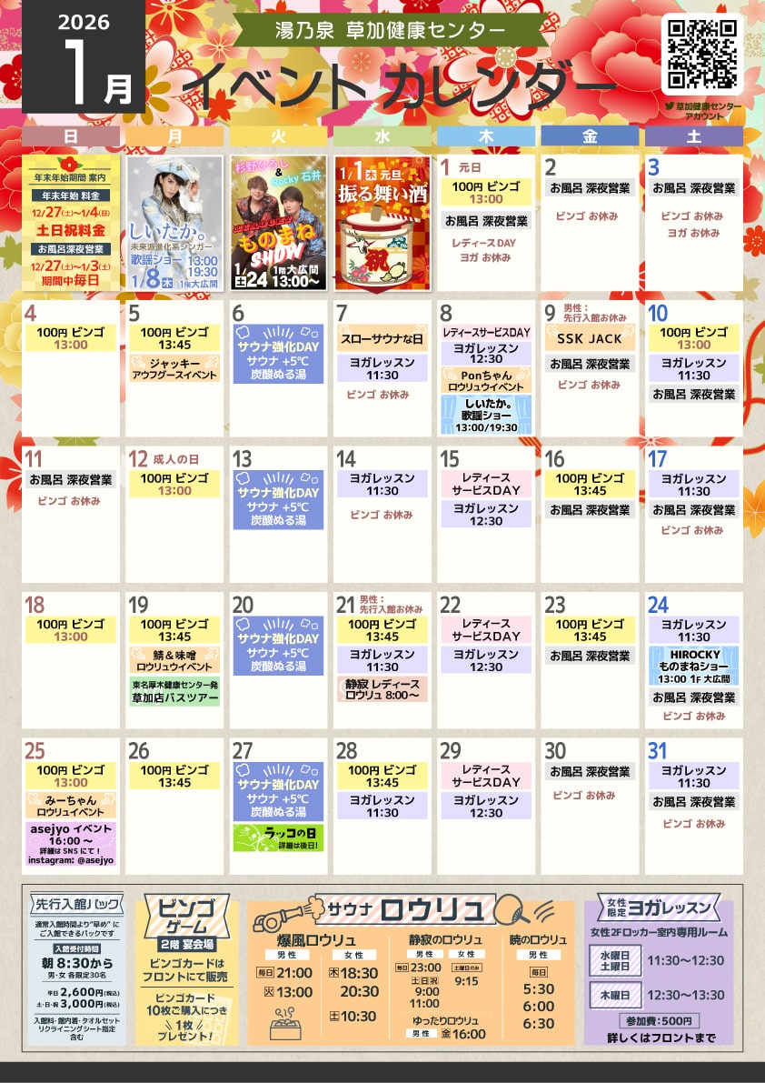 2026年1月のイベントカレンダーです。