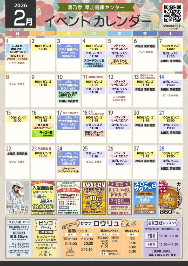 2026年2月のイベントカレンダーです。